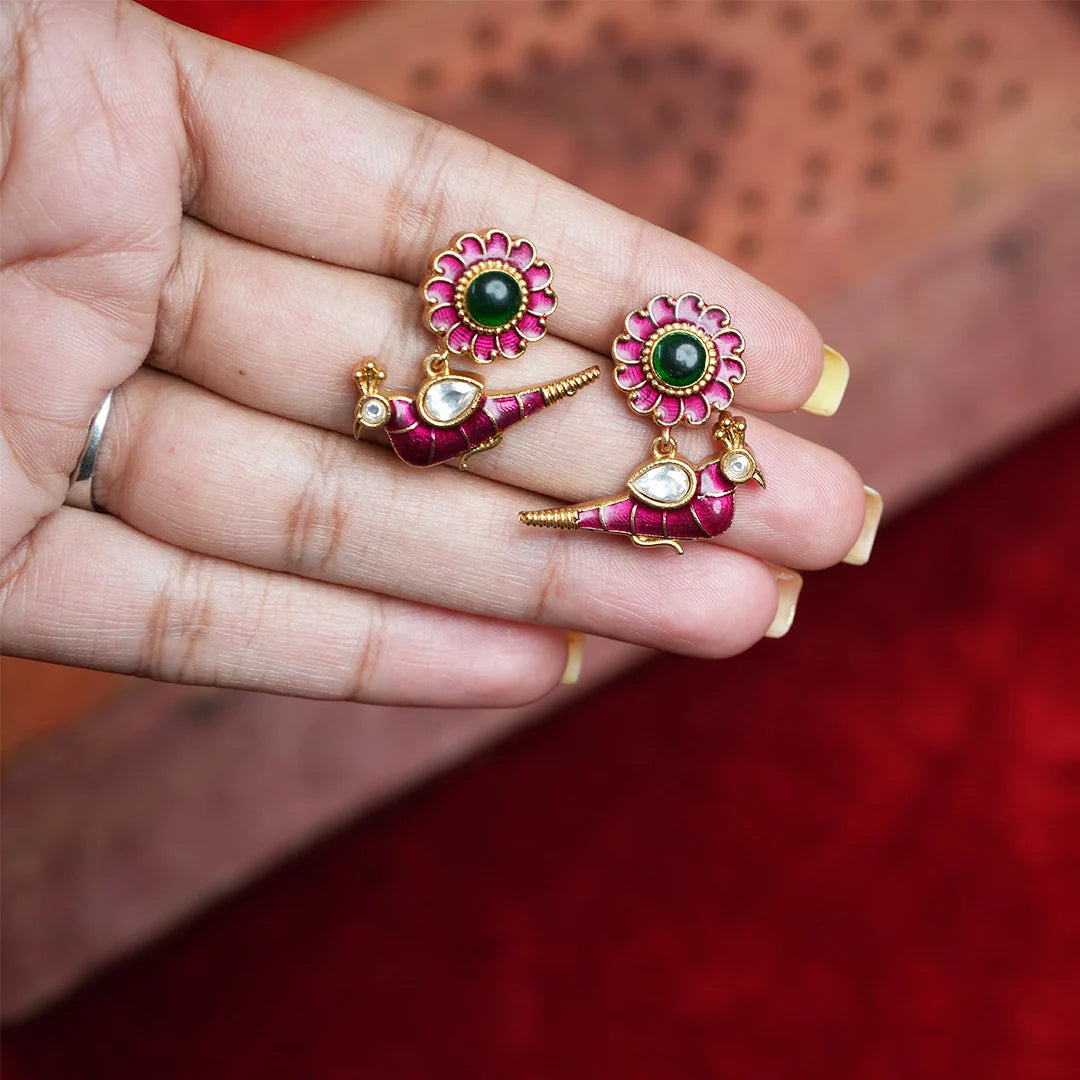 Bring heritage artistry to life with the Kamal Pakshi Necklace Set, an elegant design inspired by nature and tradition. Featuring intricate lotus (Kamal) and bird (Pakshi) motifs, this necklace reflects grace and harmony, finished in a rich antique gold tone for a vintage, regal look. Ideal for weddings, festive occasions, and cultural celebrations, it’s a statement piece that beautifully complements both ethnic and contemporary outfits.