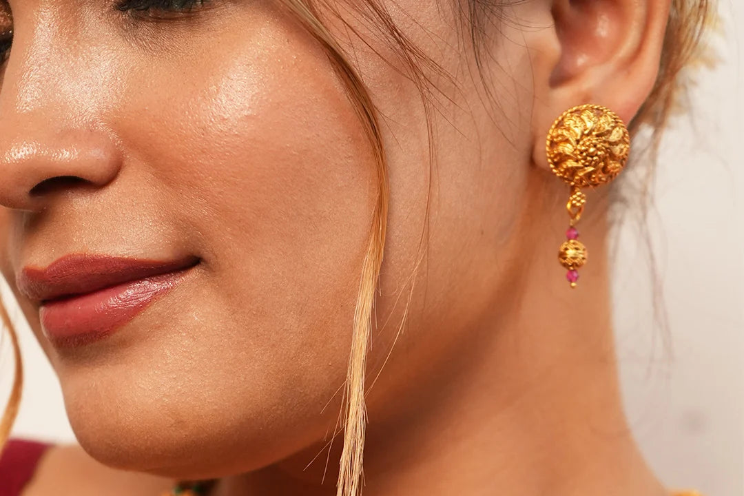 Crafted with premium materials and finished with an antique-gold plating, this set ensures long-lasting shine and durability. Lightweight and comfortable, it comes with matching earrings, making it a versatile addition to your jewellery collection.